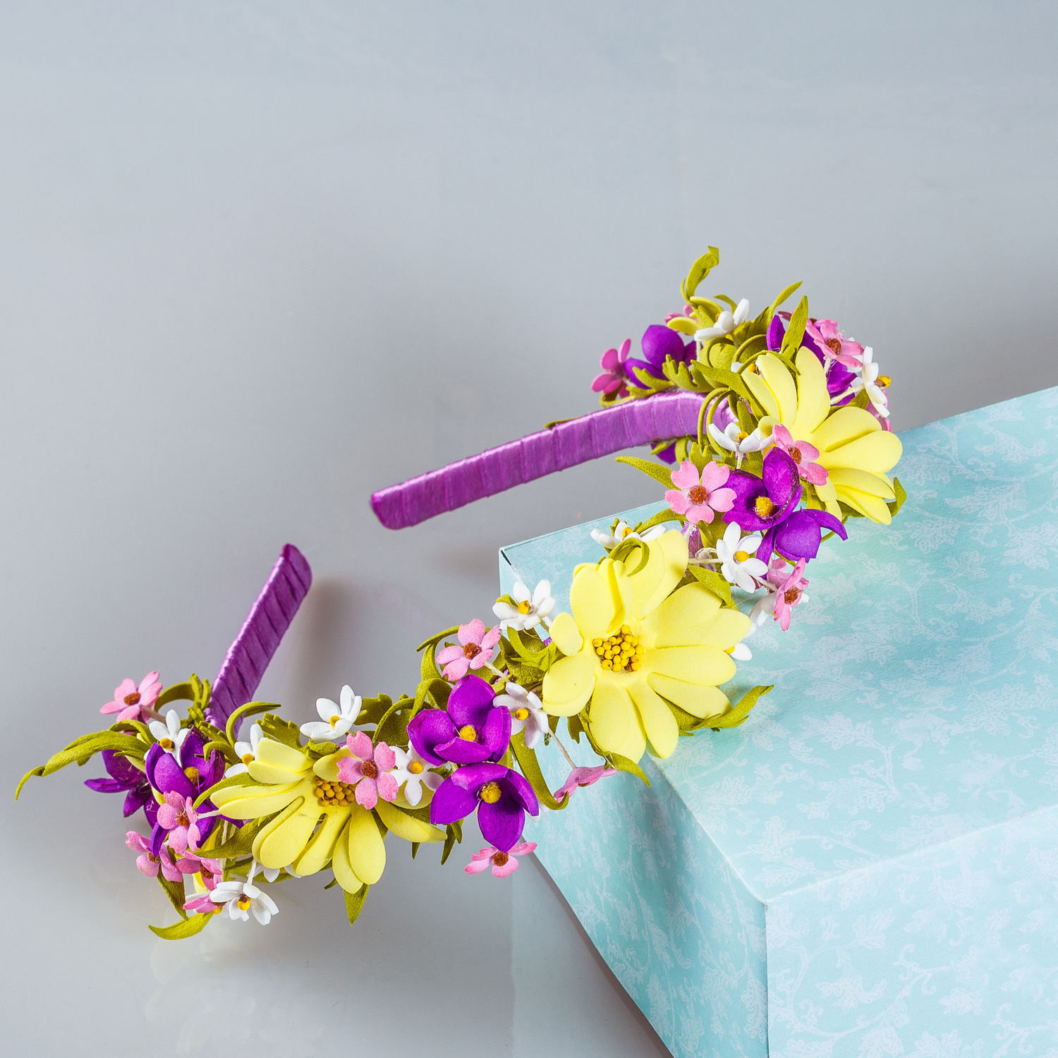 Headbands with flowers fit into many informal styles of clothing. The wreath looks great with romantic dresses, skirts, jeans, it is perfect for any summer bow.