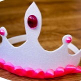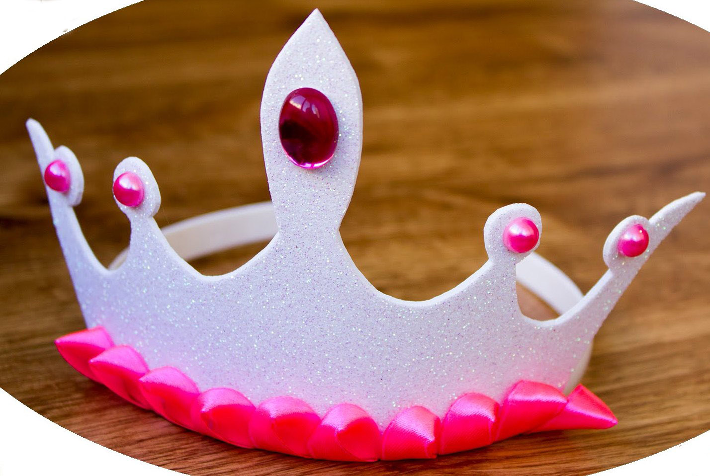 The crown can be simply cut from a sheet with a brilliant texture and decorated with various sparkles, sequins, beads and rhinestones.