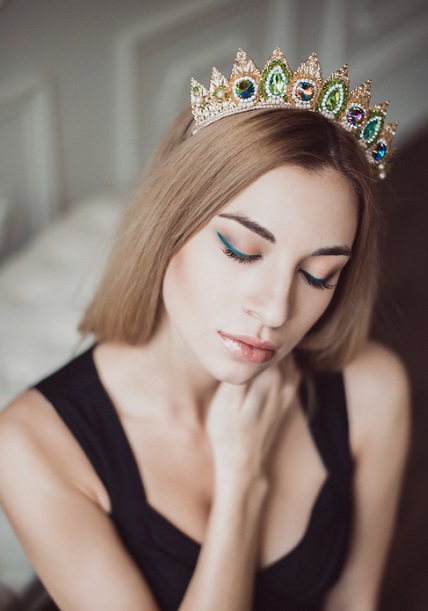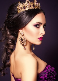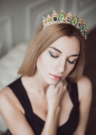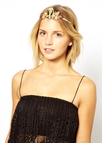 The bezel with the crown is considered the decoration of the sculptural face. Accessory requires a carefully selected outfit. Depending on the model, the hoop in the form of a crown can be worn in different ways.