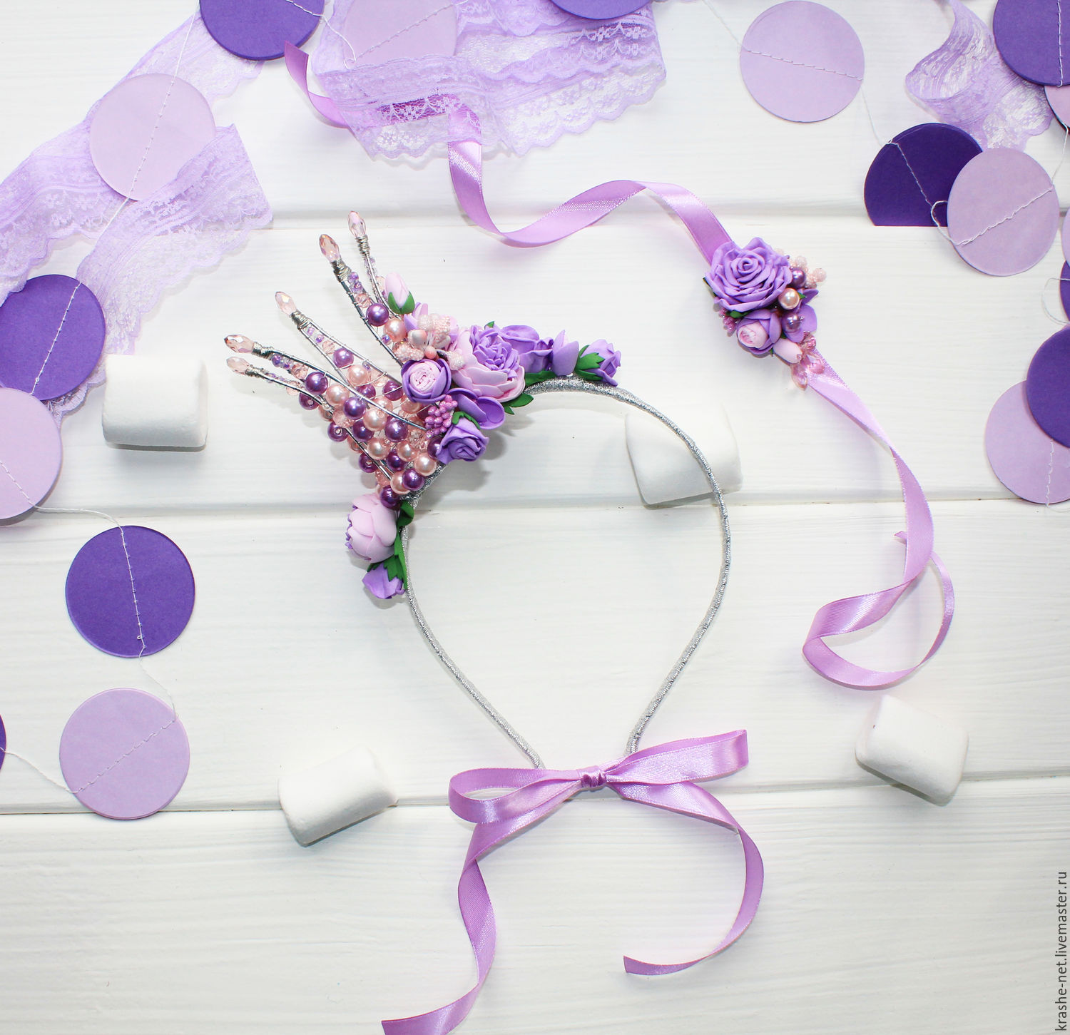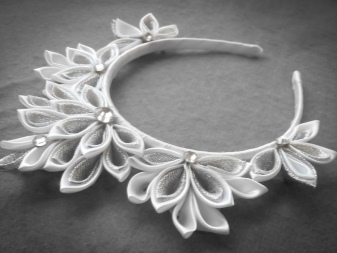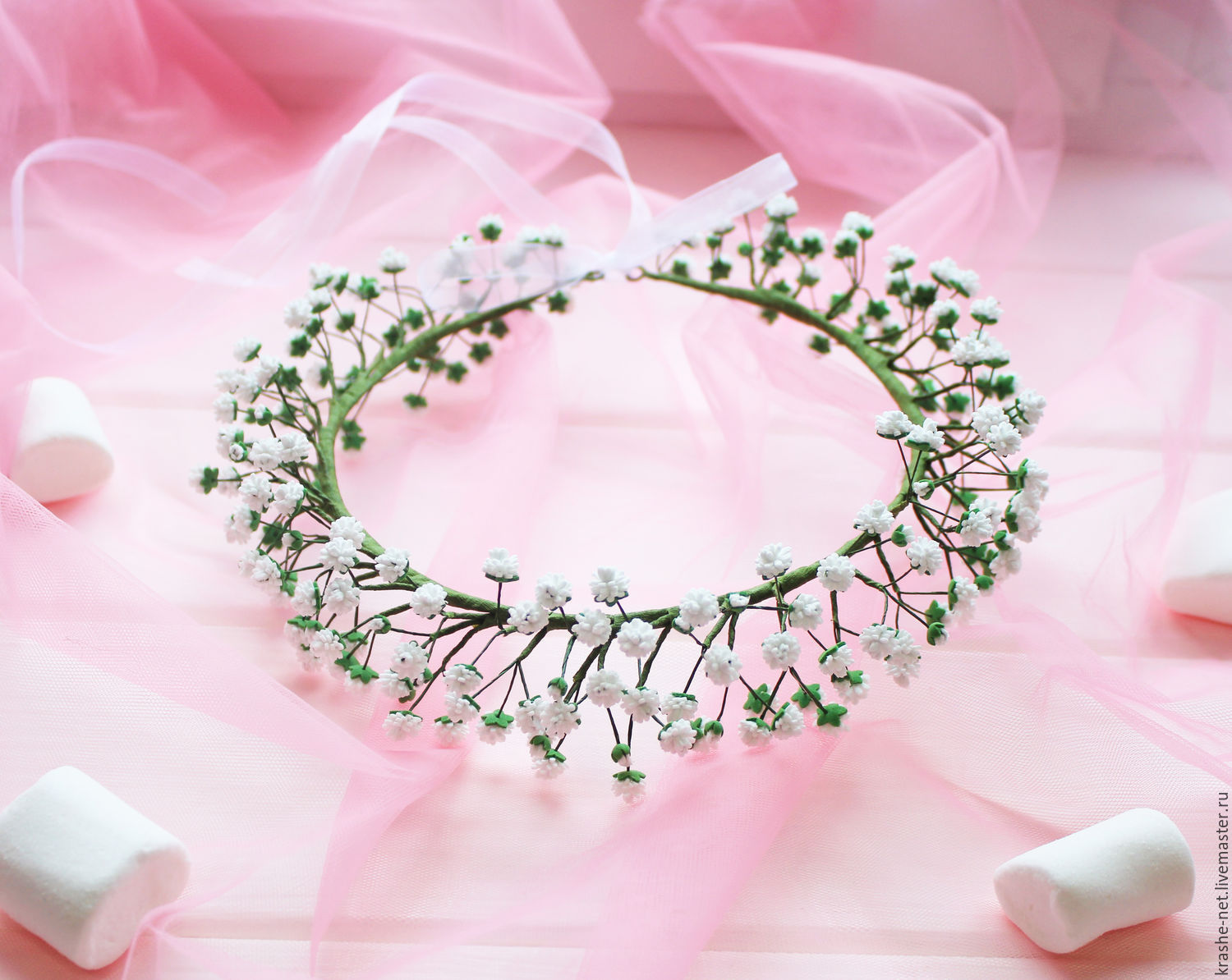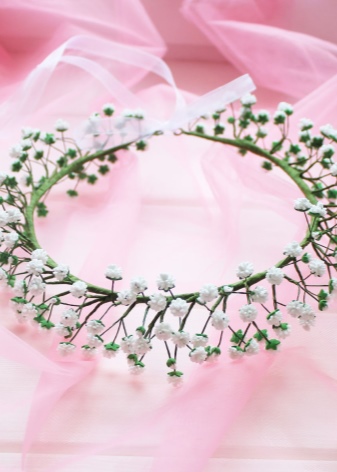 Usually the theme of the crown of this material is a floral arrangement. Such a hoop-crown is lightweight and realistic.