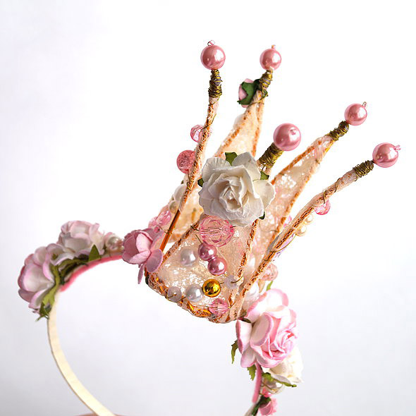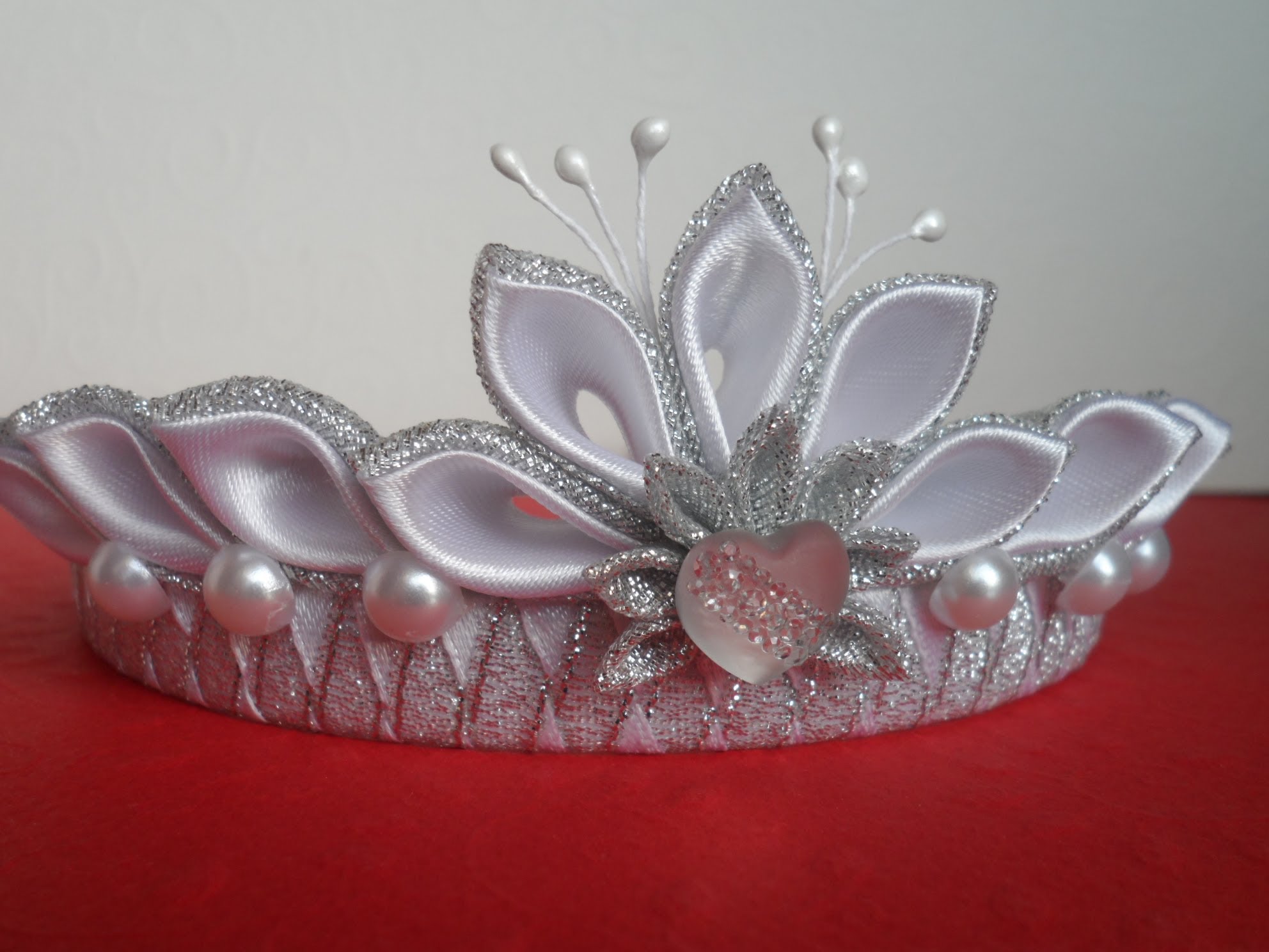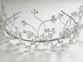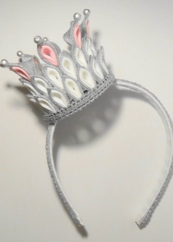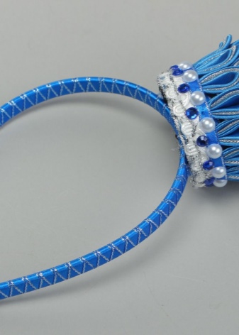 The rim with the crown can be made of different materials. The basis is rigid or elastic, soft (with an elastic band). The crown itself can be made of satin ribbons, stones, sparkling crystals, plastics, foamed rubber, beads, shells and metal elements, coins.