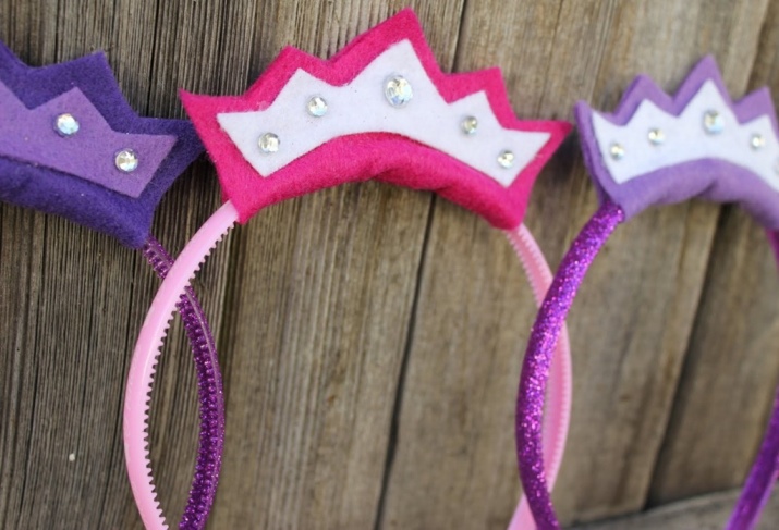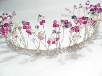 Such products are very popular with children and are often made to order to a special dress of a little princess. The choice of color is unlimited, the crown itself is always bright and brilliant due to the texture of the material.