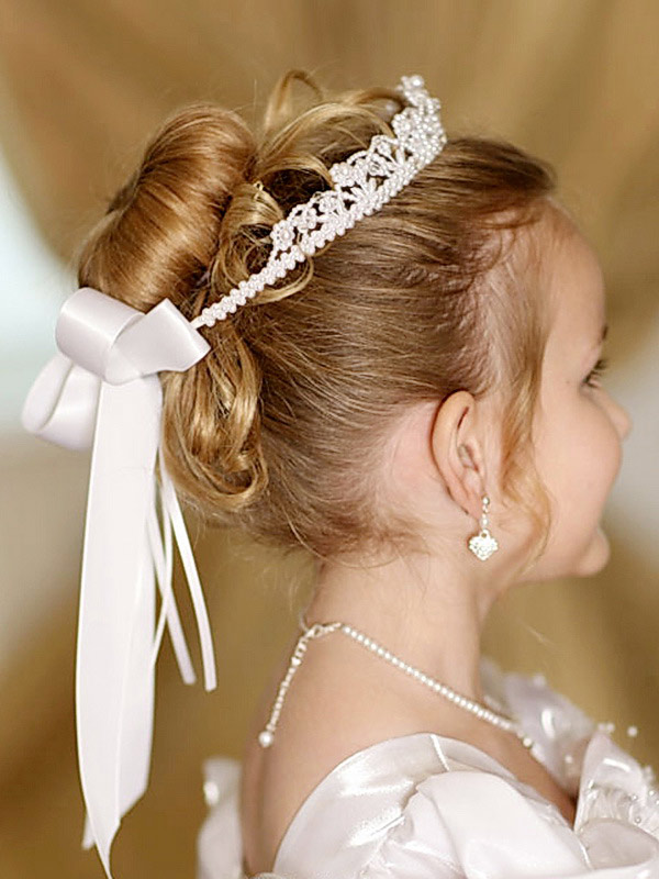 Models for girls can be very diverse, from a simple hoop with a small crown of metal elements, beads and crystals to fancy rim crowns mermaids.