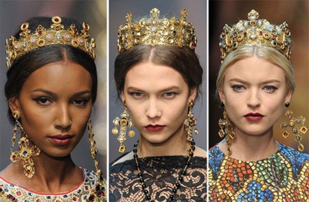 The bezel with a crown is a fashionable and stylish accessory of a modern girl. Crowns, tiaras, crowns have become trends of many fashion collections. They decorate modern outfits and have their differences. Appearing on the D & G catwalk in 2013, they were made in the Byzantine style and decorated the heads of all models of the fashion show.