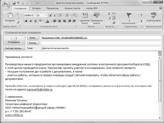 - The optimal volume of the document sent by e-mail, fit into the "one screen", with a maximum amount of text - one sheet in A4 format.