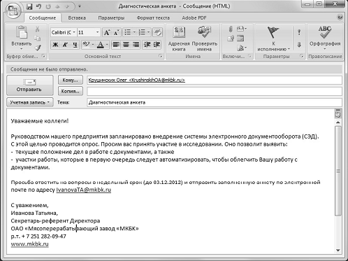 The structure of the business message is typical. Traditionally it contains: