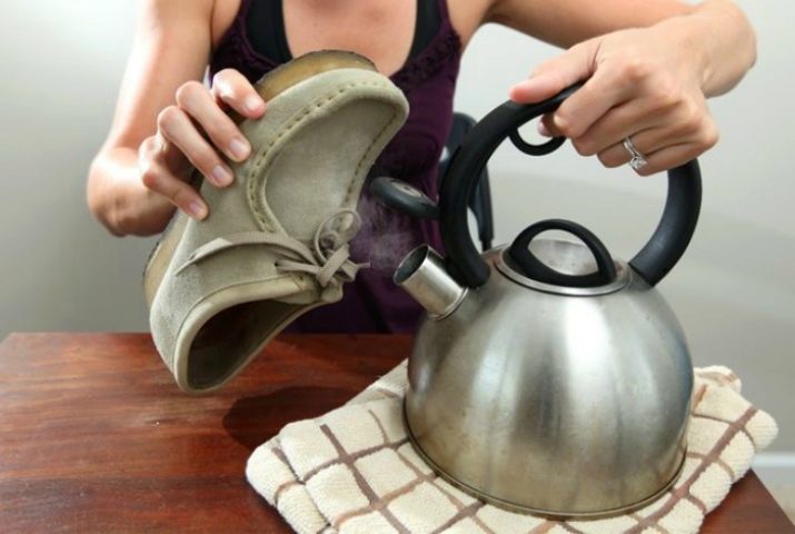 Steam cleaning is also very effective for suede, both natural and artificial. You can use a steam generator, or hold shoes over boiling water, and then carefully comb a special brush.