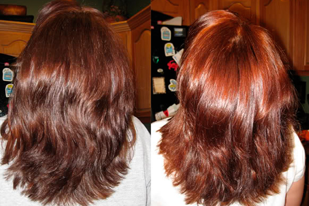 So that the hair will get a red tint, will help again onion peel, but in a more concentrated form. Hibiscus tea will achieve a bright red tone. If this tea is combined with calendula, then you can get a more burning shade. Application is regular rinsing. For deep languid color close to cherry, it is recommended to use heated wine mask. Really a red tint gives henna.