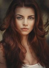 - If the eyes are dark brown colorThe main options are chestnut, light and dark chocolate, coffee, natural copper and red shades, for example, ripe cherry, burgundy, ruby and pomegranate. To create a bright outflow on the hair, the use of toning with golden or pearl highlights is allowed, but first you will have to discolor part of the strands. An alternative version is considered to be an ombre, selection of strands on separate zones with extreme color, monochromatic highlighting.