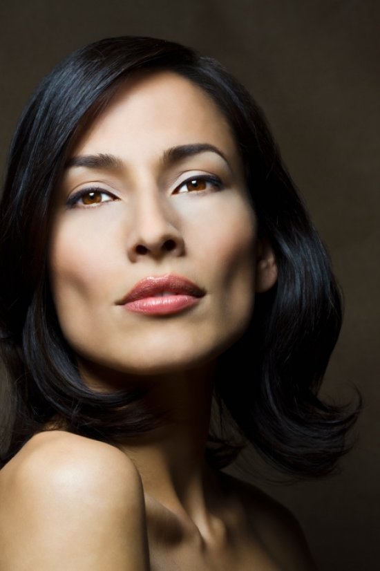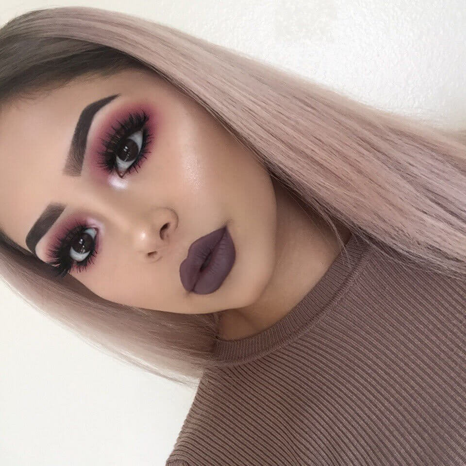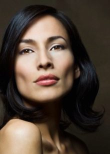 - Owners of dark brown, actually black eyes most have the same color of hair. For this reason, for brunettes with dark skin, it is better to choose chestnut shades, softening too bright image and making it more feminine. If the skin is porcelain-white, you can shade the hair with bluish-black or cherry tints or bleach and then toning into an Arctic, Scandinavian blond. Warm light tones of copper, platinum, and gold will not look so advantageous, so they are not advised to use them. In addition, black-eyed ladies fit contrast or monochrome highlighting.