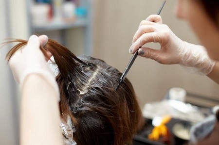 So that the skin on the face does not become red, it is smeared with Vaseline or cream along the hair edge. Then put on gloves and cover your shoulders with a towel. With the help of a long thin handle comb make partings on the head and start painting from the roots. Apply the mixture with a brush.