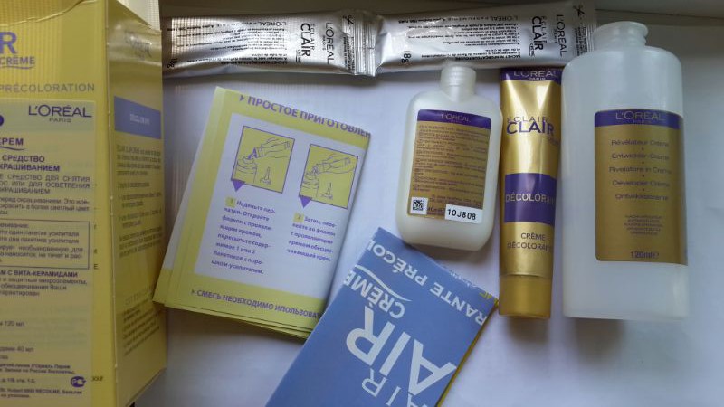 - L'Oreal Eclair Clair Good for getting rid of old resistant paint. The remover lies evenly, it is distributed over the strands well, therefore it highlights them without visible blemishes such as color spots. The caring mask enters a set.