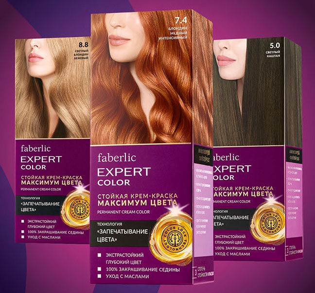 Faberlic offers several types of hair dye, each with its own unique formula. Due to this, each type of coloring agent produces its own effect, which makes it possible to aim at a different category of consumers.