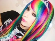 Now there are a lot of safe tools that can be used if you are going to a school party or want to surprise your friends with an unusual appearance. They are short-lived and washed off the head for one or two times.