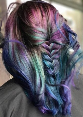 There is an incredible variety of variations in dyeing techniques - from just a single bright color to dyeing different areas on a hair in iridescent colors. They make it possible to mix different shades to obtain a certain color, use a huge palette of bright and more pale, pastel colors.