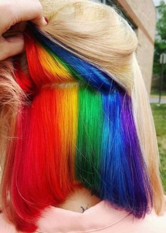 - Rainbow staining - a clear transition of the colors of the rainbow on the hair.
