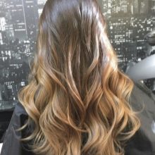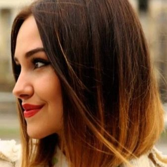 Consider the process of self-dyeing dark hair. In this case, ombre paint is recommended to choose 2 tones lighter. For contrast, any shade of caramel or milk color is good. You can also try copper-red color.