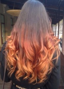 Long hair is the most suitable option for an ombre, since the transition looks especially natural. The length makes it possible to diversify the techniques of coloring - to use not the classic 2 colors, but 3 and even more. You can make staining diagonally, you can select individual strands. On long curls, the border of coloring usually passes at the level of the chin.