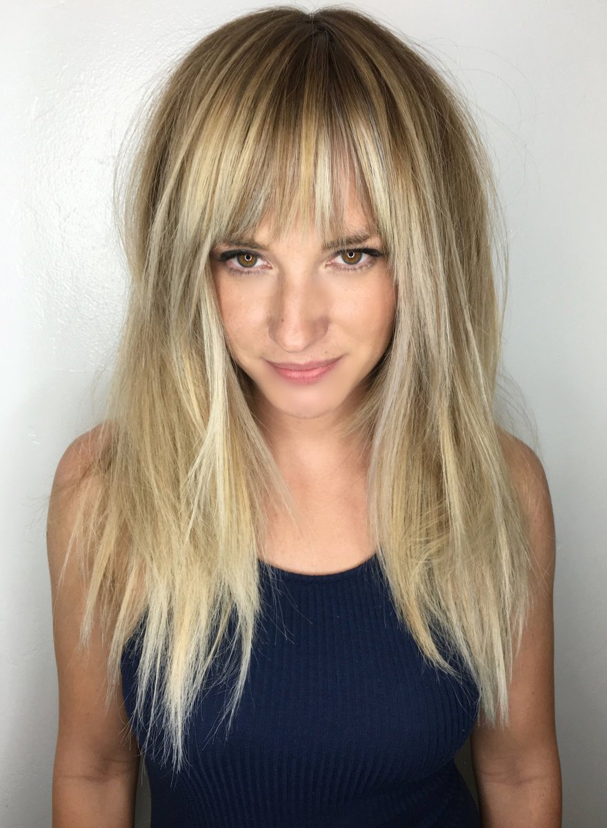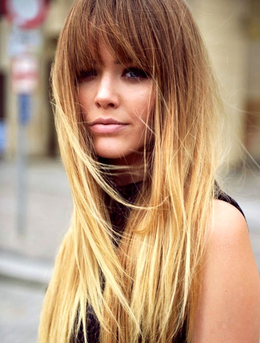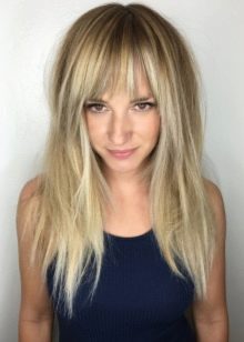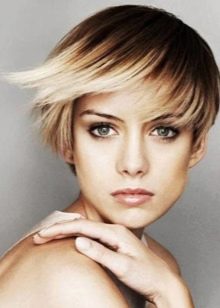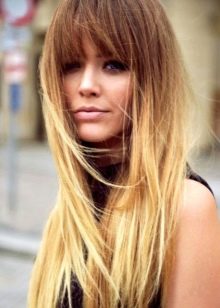 Ombre technique also helps to correct the shape of the face, in the classical style (dark top, bright bottom) painting makes the face more elongated, thinner. The haircut with a bang makes it possible to pick out a bang - for example, by painting its tips.