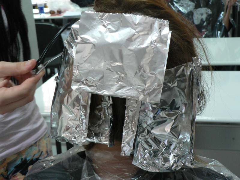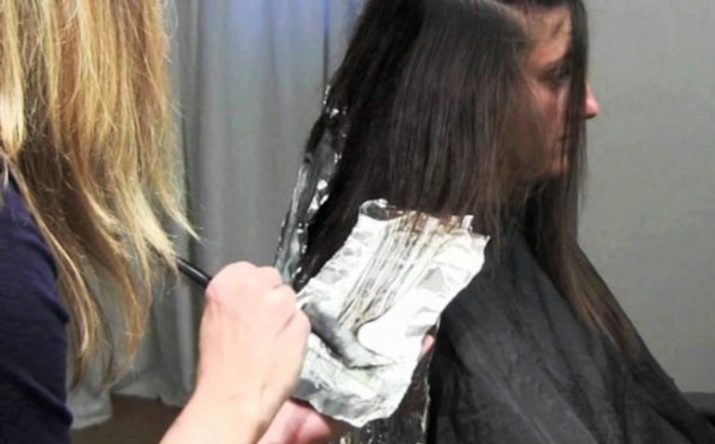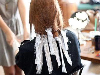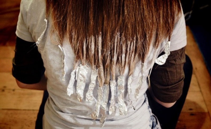 - Remove the foil, wash off the clarifier and reapply it - now 5 centimeters higher. We are waiting for 10 minutes and again wash the hair.