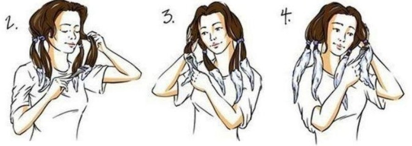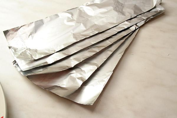 - Then we wrap each tail into the foil as follows: put the strand in the middle of the foil along, wrap it from the edges, and fold the bottom edge upwards and along the sides so that the foil does not slip. Keep about 30-40 minutes.