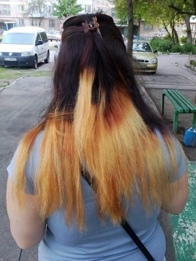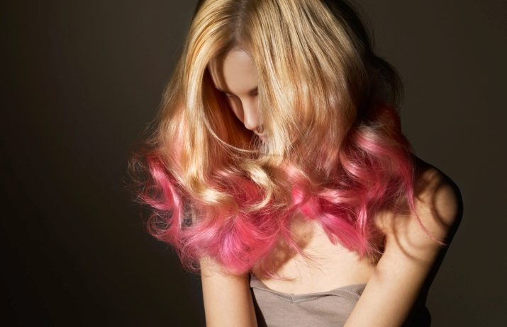 It is acceptable when any natural tone turns into a bright, unexpected color (pink, blue, green, purple). Moreover, if a natural tone is transferred to another, the border is necessarily blurred, then in the case of a transition to a bright unusual tone, it can be expressed very sharply.