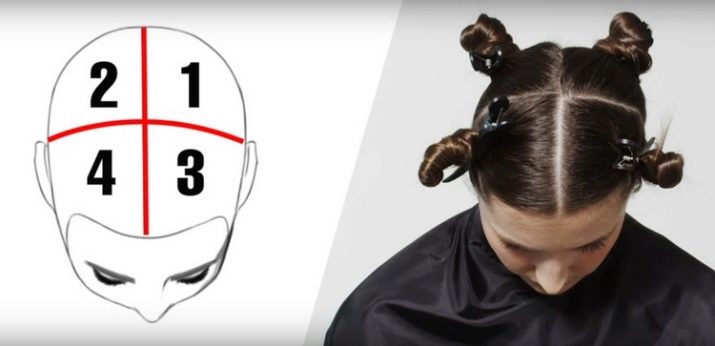 - Having prepared all the necessary tools, you need to carefully comb and slightly moisturize the hair. Then divide the entire volume of hair into a straight part, divide each part more using a clip or elastic band. Similarly, we get 4 tails - 2 on each side of the face.