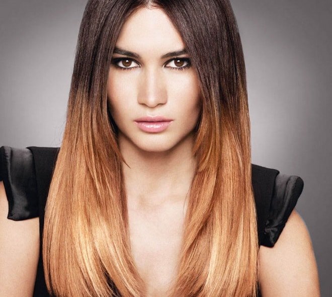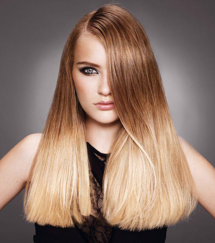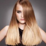 Classic ombre is recommended for blondes with the use of transitions to lighter colors, thus creating the effect of sun-burnt tips. Moreover, if the hair is amber or light brown in color, then transitions to golden, caramel and wheat shades are appropriate, and if the natural gamma is closer to ash-brown, then the edges can be made either with platinum blond or, on the contrary, slightly darker .