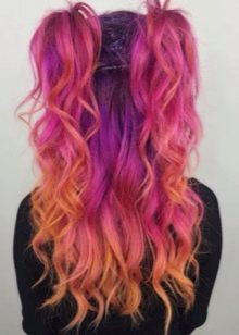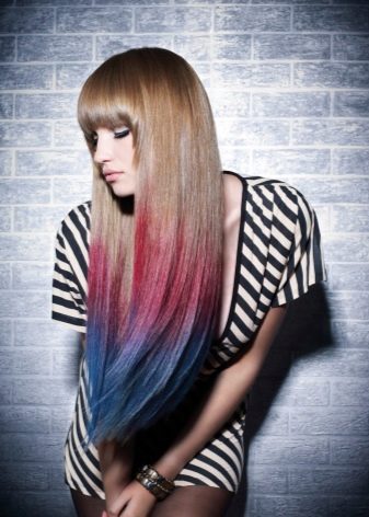 - Color - coloring is optimal for women who like to stand out from the crowd, it allows them to become more vivid, and in the literal and figurative sense of the word.Such an ombre is the most radical way to change your image. Usually for such staining using rich juicy shades - burgundy, Marsala, pink, purple and blue. Combining them with each other, you can achieve extremely unexpected creative effects.