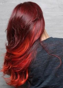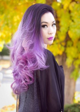 - Reverse - This technique involves the design of the gradient from light on the roots to dark color at the edges. Such a solution harmoniously looks in combination with the purple or red edges of the hair.