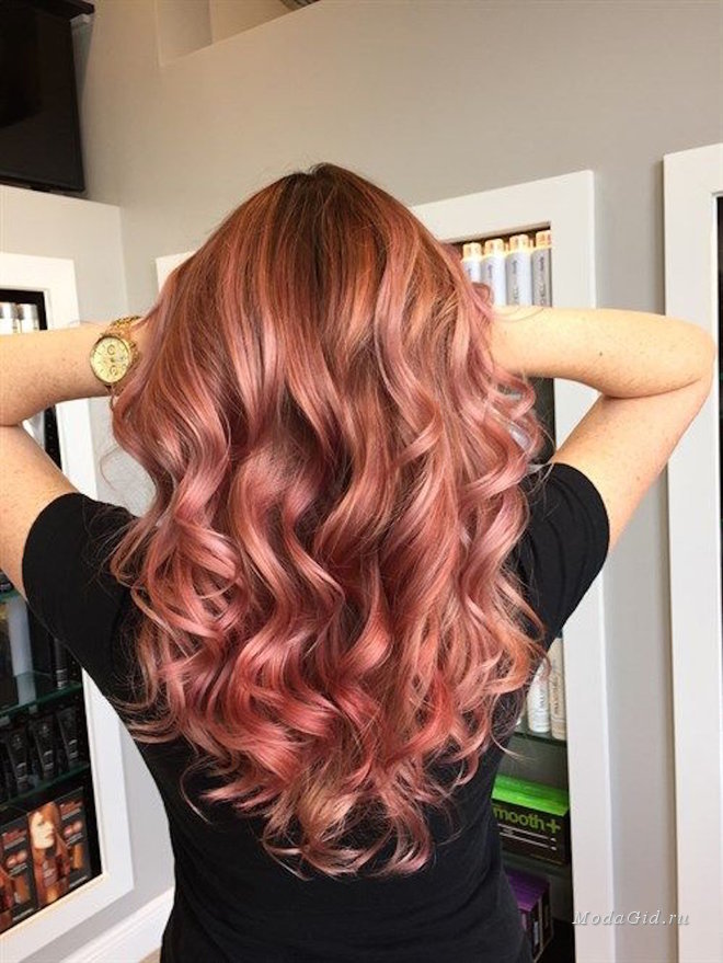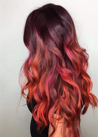 Another trend combination is red with pink, like an ombre suitable for all shades of light brown curls, while the look is quite tender and very feminine.