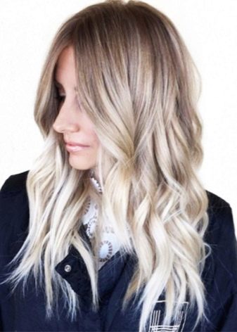 Girls with light curls in most cases dye their hair so that the effect of regrown roots is obtained, while the root area is tinted with darker shades, and towards the tips their color becomes lighter.