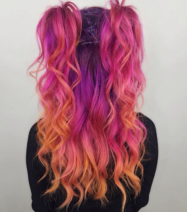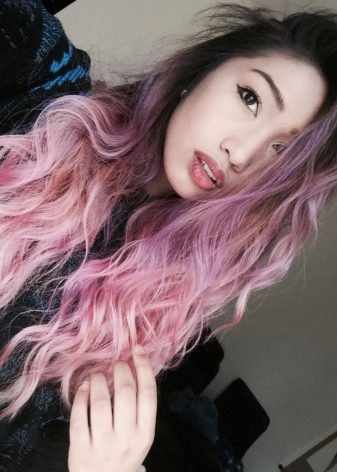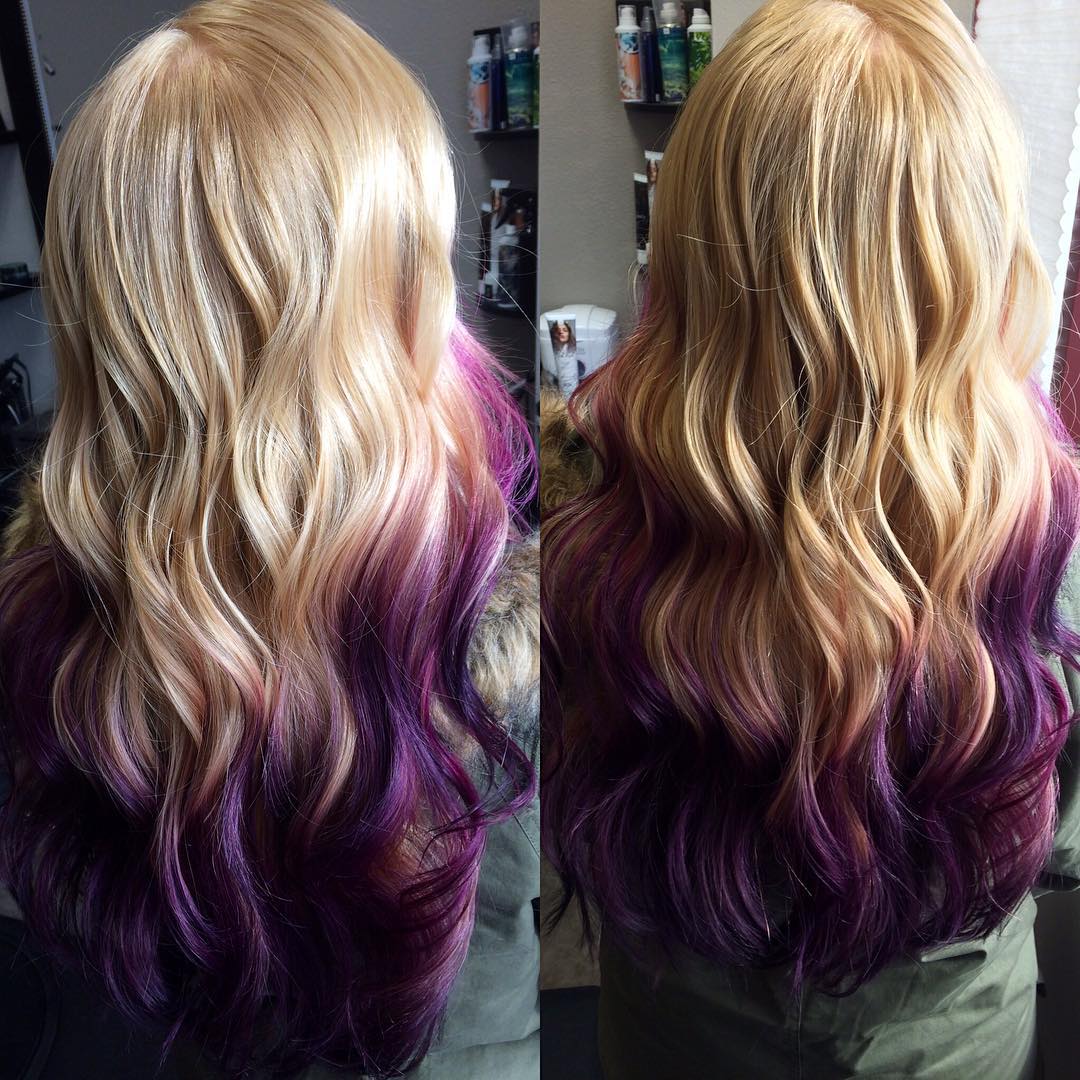 Blonde ladies look spectacular transition in pink or purple hues - this decision makes the image more stylish and bold.