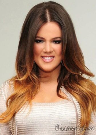 - Ombre armor - This option is optimal for the fair sex who seek to maximize the naturalness of the color scheme. As a rule, the basal zone (about 8-10 cm) remains darkened, the strands in this area are painted in chocolate and coffee shades, and the rest of the stacks are tinted on the principle of brondirovaniya, when shades of several colors gently flow into each other, creating the effect of slightly burned out hot sun hair.