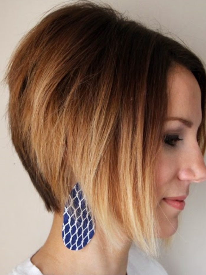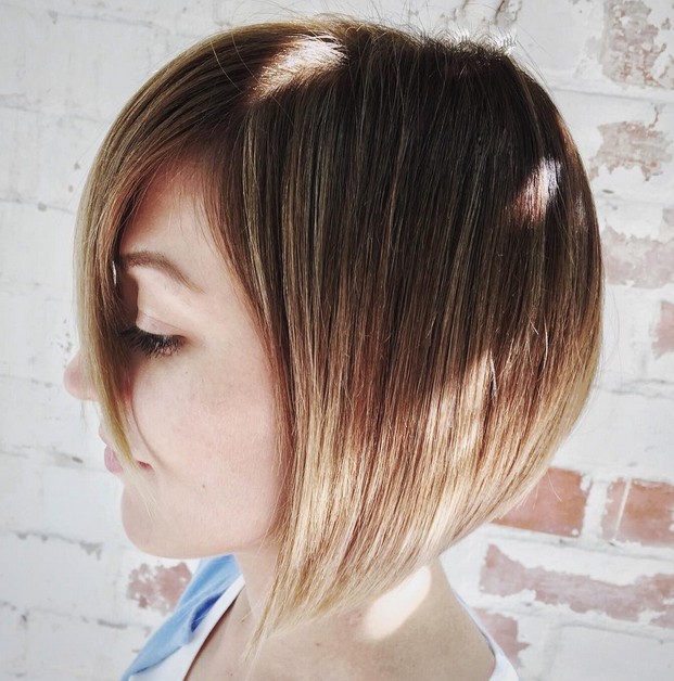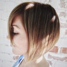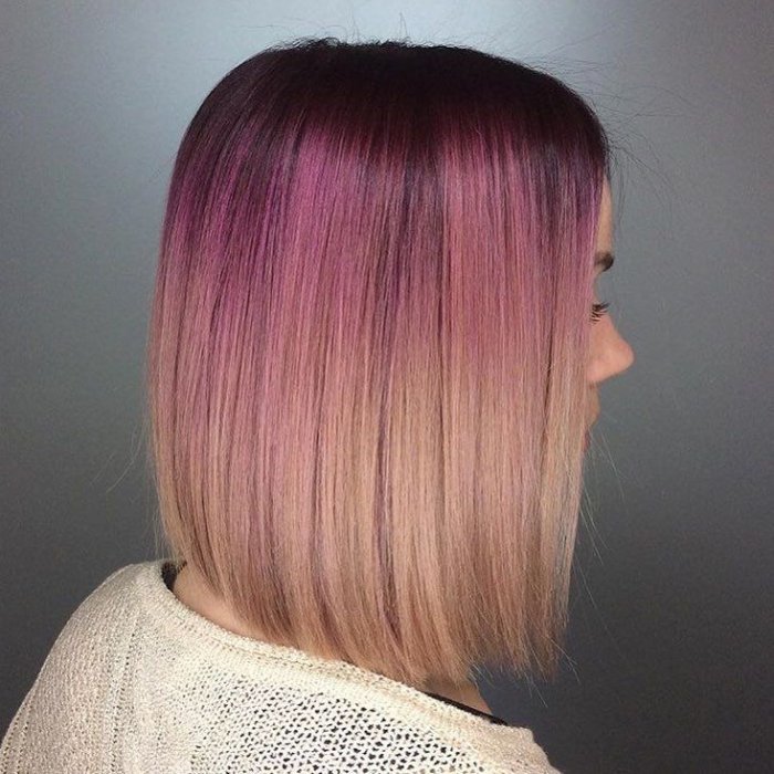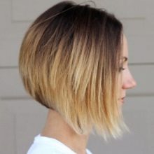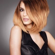 This haircut belongs to the stepped species with a graduation, strands with proper styling are luxuriant and thick. Ombre in this situation can still add volume and eliminate the difficulties associated with the time spent on styling. The roots seem raised, the lightened tips are drier, which makes the overall impression of the hairstyle very expressive. Can say that bob-caret and gradient stains are made for each other, emphasizing the beauty and elegance of both techniques.