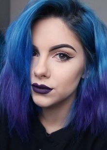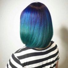 - Multitonal creative. Here the breadth of the palettes used is even bigger and more varied. It all depends on age, lifestyle, status and taste. The roots of blue, stretching to the violet in the middle and raspberries at the ends - luxurious bright coloring. It is important not to overdo it and observe a sense of proportion, as well as correctly choose the shades.
