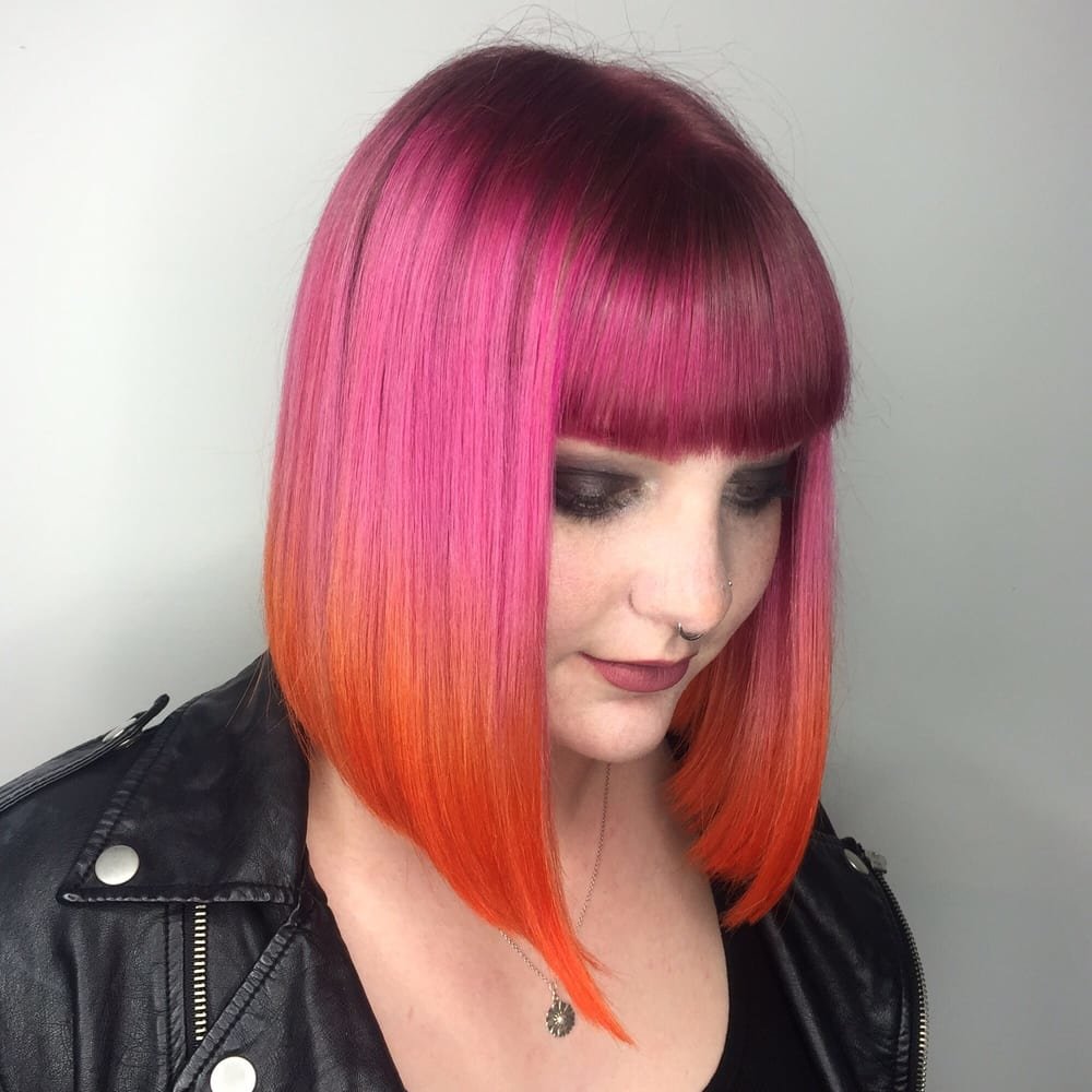 - bangs diagonally it looks more harmonious if its dyeing style matches the rest of the strands, so it can be left in its native state, provided that the use of pigment begins below its line;