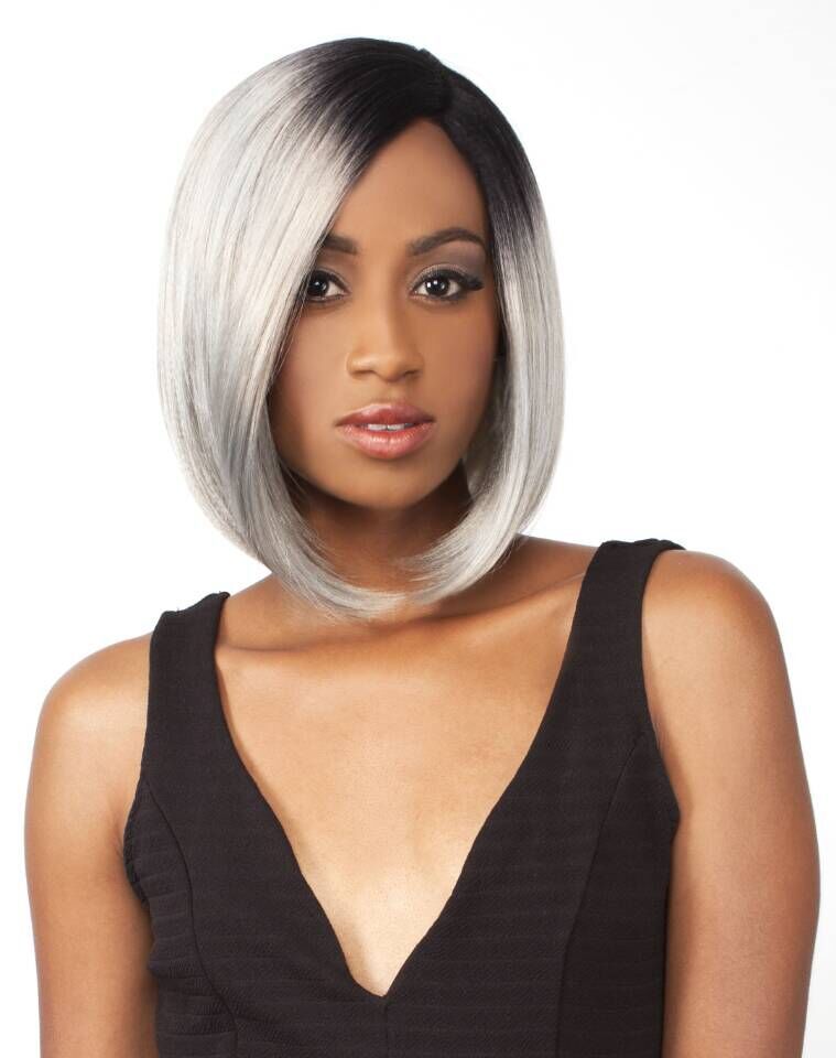 - Monochrome This black and white coloring, concise, restrained, but luxurious. Such an ombre in a trend is no longer one season, it includes a combination of platinum and black. Monochrome is good in a smooth gradient, and with clear boundaries. It is permissible to paint individual strands on the ends. It is ideally combined with a lengthened square and oblique bangs.