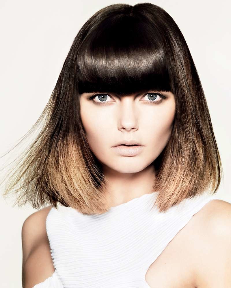 - long straight bangs allows you to show imagination, both of the above options are suitable for it, and you can also try coloring two strands near the border with the bulk of the hair.