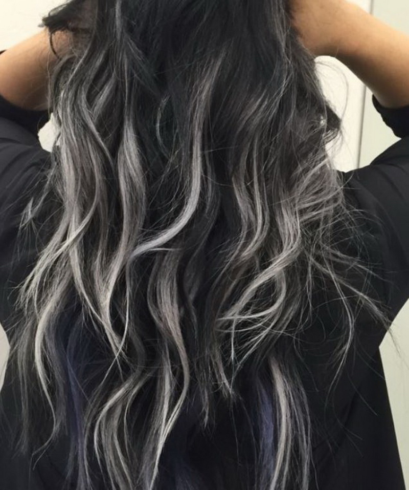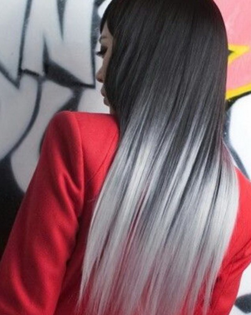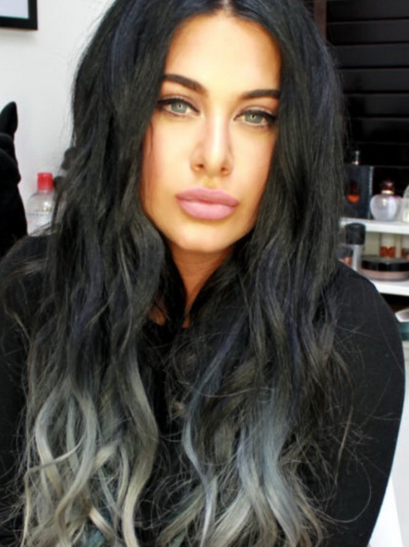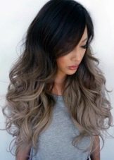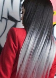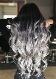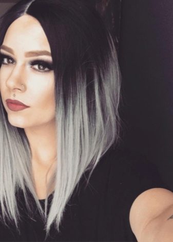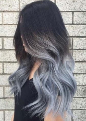 Ombre is a special hair coloring technique that allows you not only to change the appearance, but also to create a new style without using significant changes. If desired, you can make as little staining as a spectacular bow, using several colors. It is worth paying attention to the selection of stylish and beautiful examples of dark hair. Gray ombre looks spectacular on black hair of medium length. Usually this option is chosen by girls who want to stand out from the crowd, to become the center of attention. Slightly wavy curls add additional volume to the hairstyle.