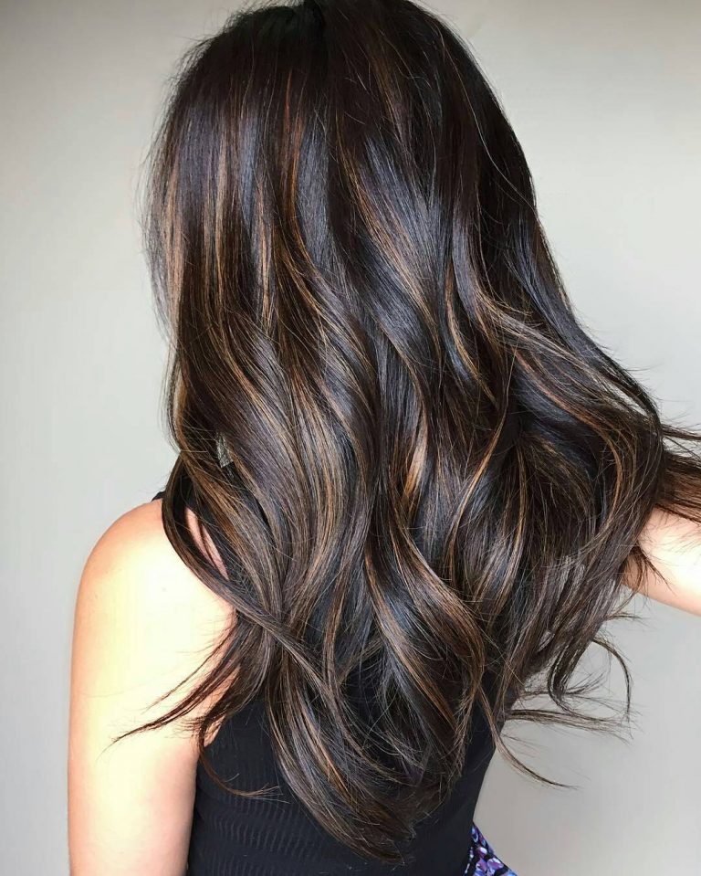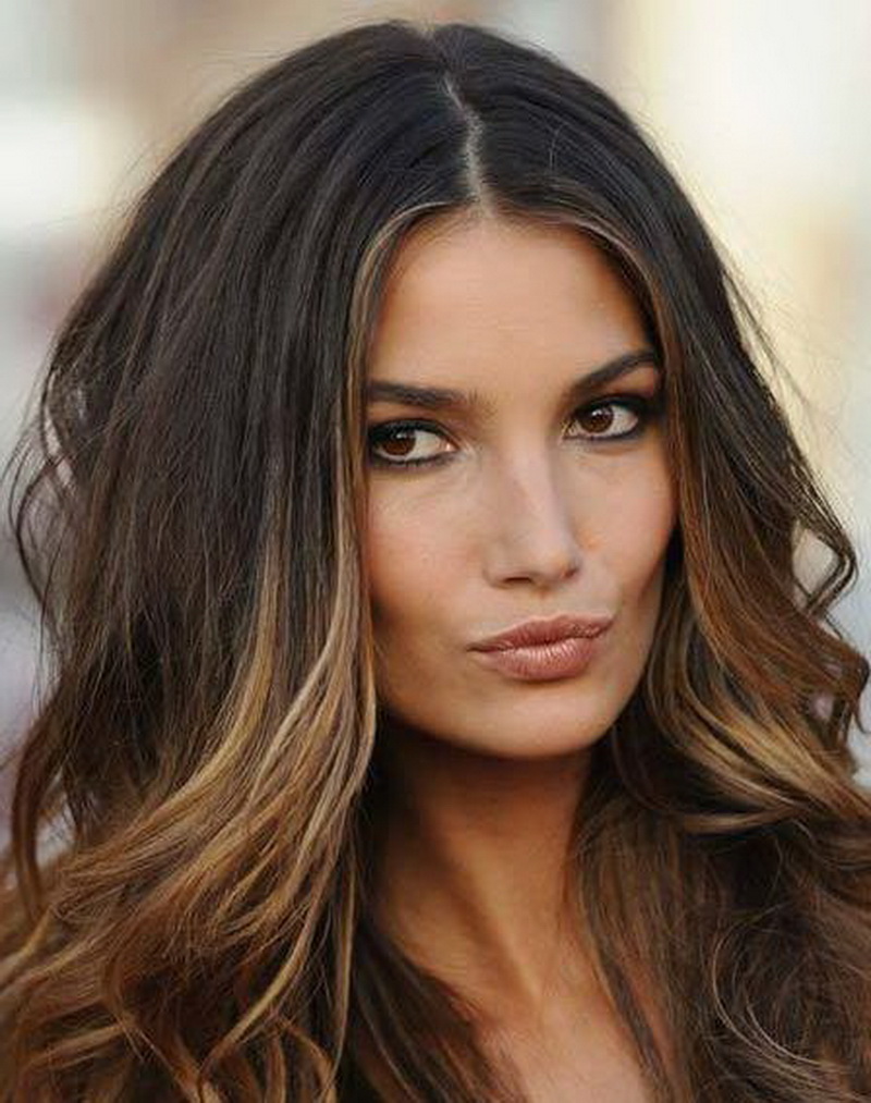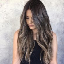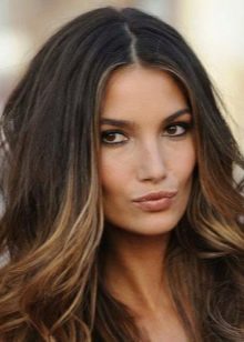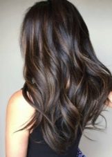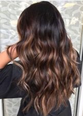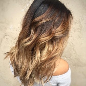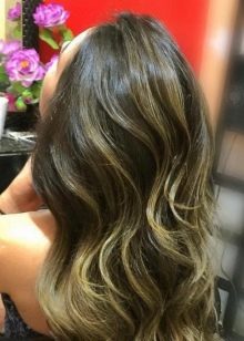 This option is also called multi-tone, since it is represented by using a large number of shades, while maintaining smooth transitions. This solution is often chosen for long dark hair. For him often use the transition from chestnut, copper, black or chocolate color to honey, brandy, nut, wheat, platinum, caramel, beige and pearl tones.