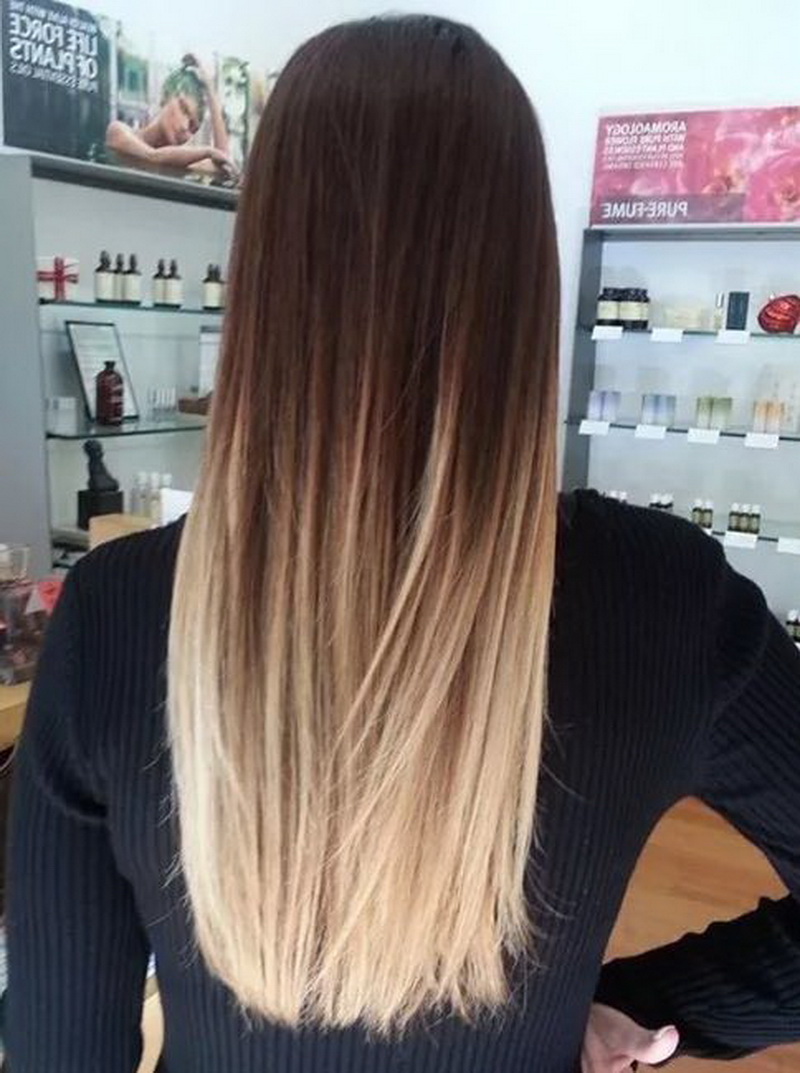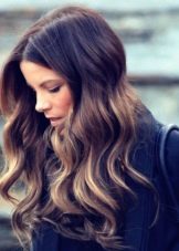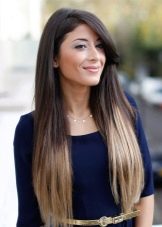 This option is perfect for dark hair, it gives them elegance and style. Its essence lies in the fact that it creates the most smooth transition from dark natural roots to a lighter middle and the tips of the hair. Paint should be as close in color to the natural. This option ombre is often used by owners of long hair, who prefer cascading haircuts.