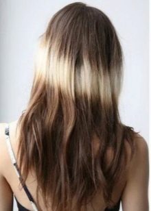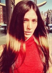 This type of highlighting is also called ombre in three zones. It can be attributed to the bold and spectacular decisions. To reproduce this type of dyeing, it is necessary to split all hair horizontally into the lower, middle and basal zones. In this case, you can apply these two variants of staining, as