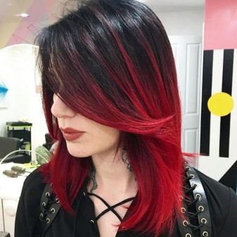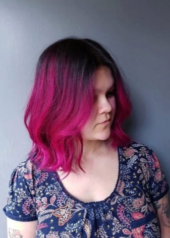This version of the painting allows you to create amazing solutions, combining quite bright colors, making unusual contrasts. Hair coloring can be pink, burgundy, chocolate, raspberry, cherry, caramel, turquoise and even gray. This option looks great on women whose natural hair color is brown, black or dark blond. He is chosen by young people who are open to experimentation.
