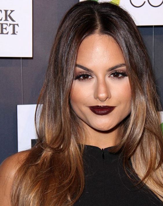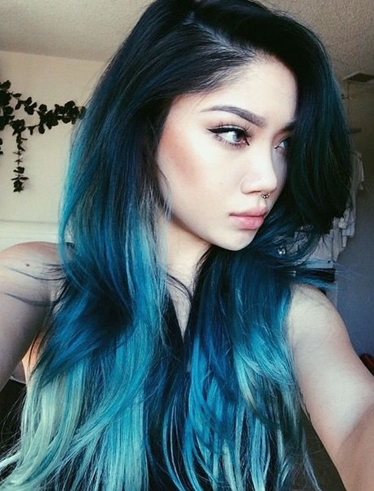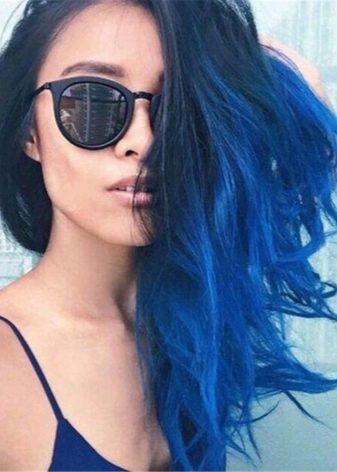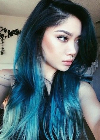 Eye color, like the type of face, plays one of the main roles when choosing a color solution for dyeing brunettes ombre hair. For example, cold colors are suitable for owners of rich eye color and light skin. In this case, you should give preference to purple, plum, dark chestnut, blue, platinum or mahogany color. Blue coloring is quite common, because it allows you to create a bright image, to attract the attention of others to your appearance.
