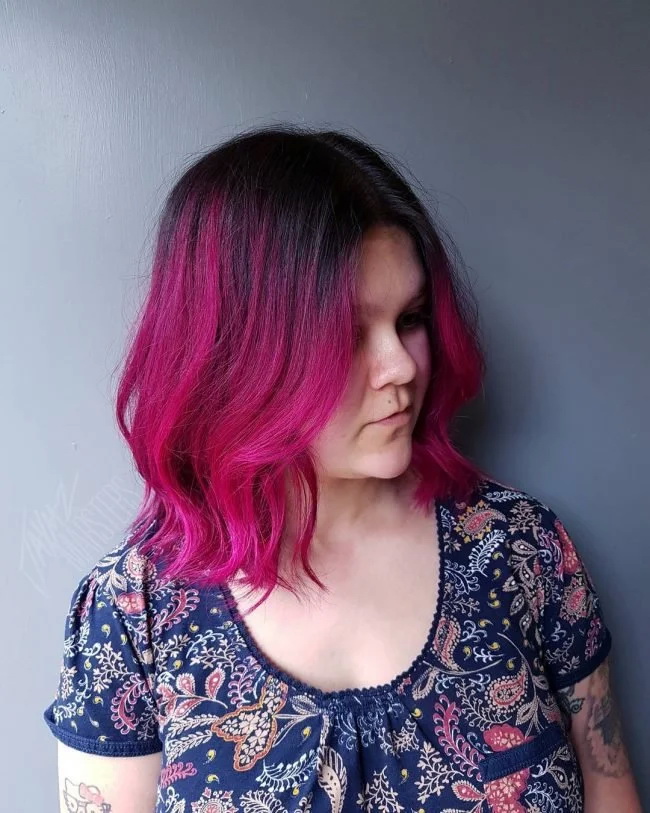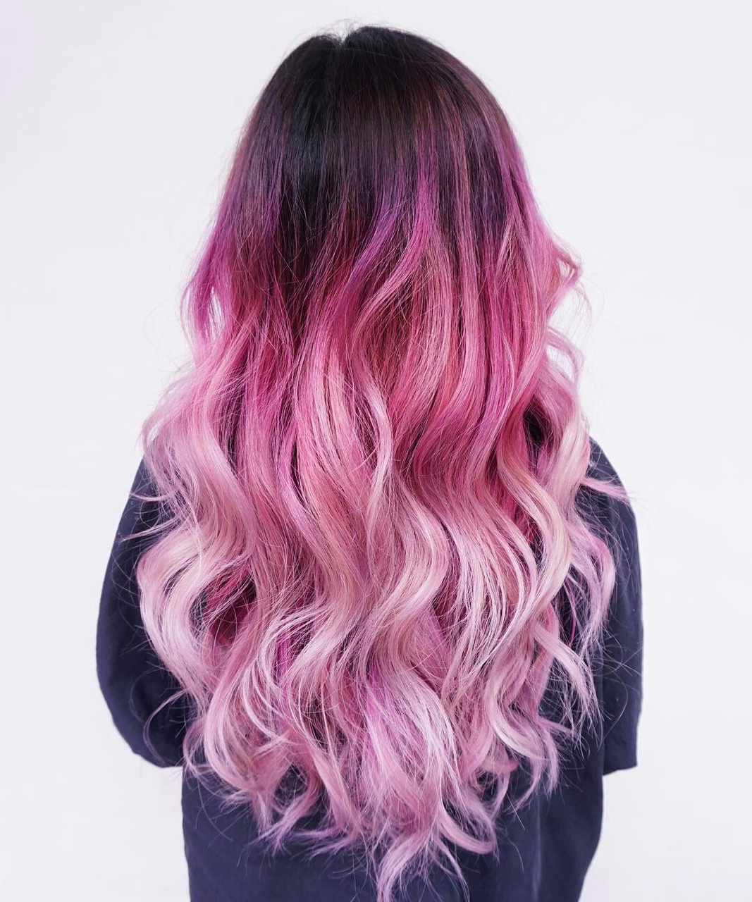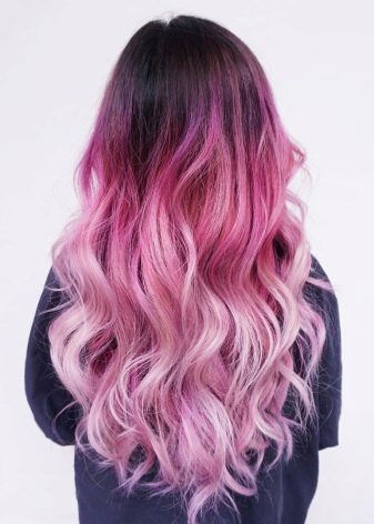 Pink ombre on dark hair - a solution for bold and bright girls. This option looks amazing on long curls. A spectacular bow is guaranteed for sure.