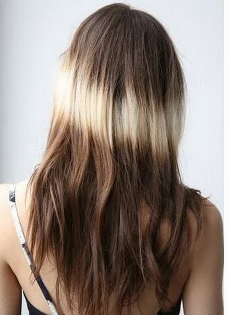 The optimal hair length for this type of dyeing should be slightly lower than the shoulder blades. In this case, it will be possible to realize an accent strip in the middle.