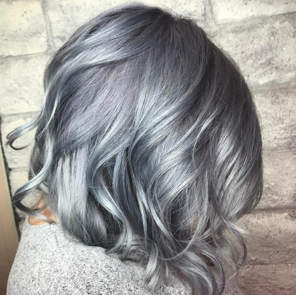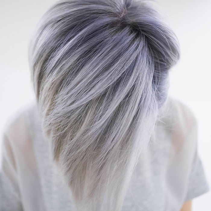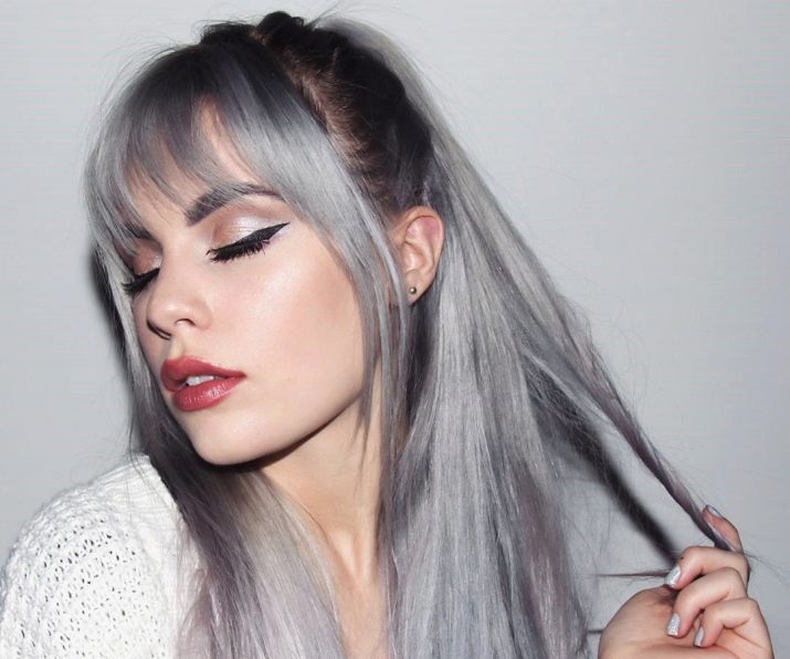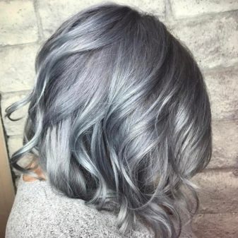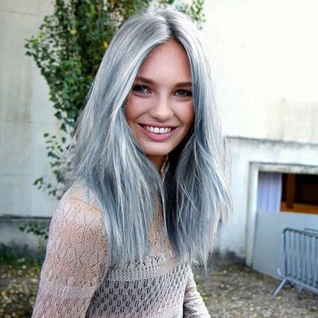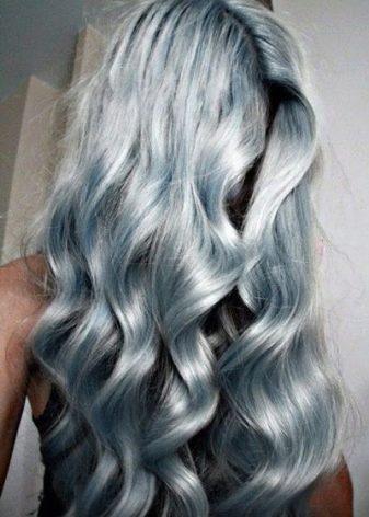Despite its "muffled", is a rather eccentric painting. The hair is first lightened, and after it is dyed with a weakly concentrated blue dye. The result is a muted blue color without going gray. It fits almost everyone, but doesn’t fit well with a casual look. Can quickly get bored.