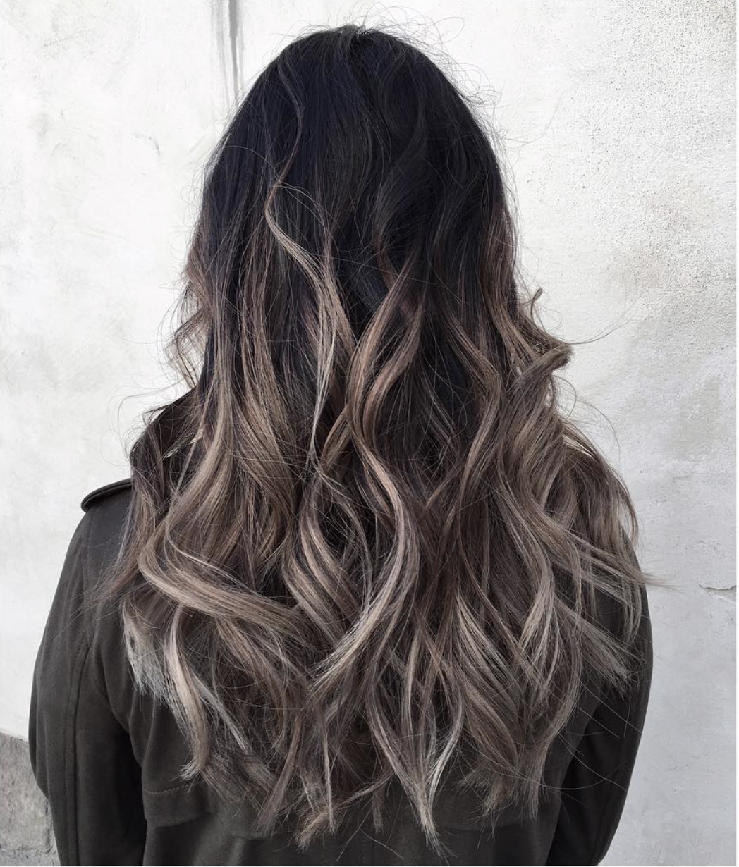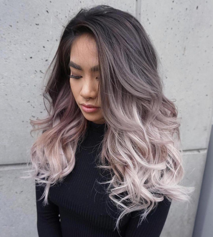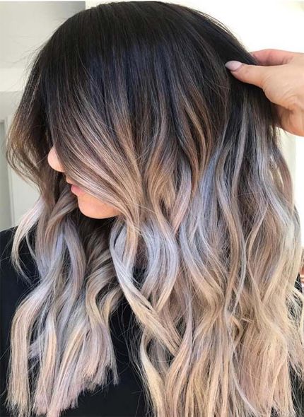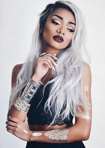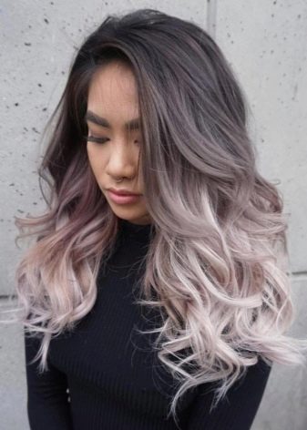 Most of the ashen color fits black, dark hair in combination with light, almost white skin, gray or light blue eyes. But this type is quite rare. Most often, brunettes for the most part belong to the Asian type of person or dark-skinned. It is better for them to choose not a contrasting gray-white, but shades a bit more gentle: beige or blue. For girls with dark skin color, you can add to the ombra purple. Black women are all bright, and even acid colors.
