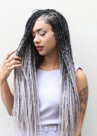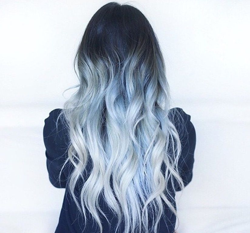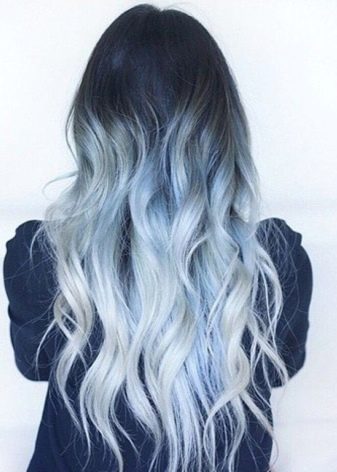 The bright image is an ombre of ash color in the middle of the length of the hair and blue-gray at the tips. It looks especially good on thick and long hair.